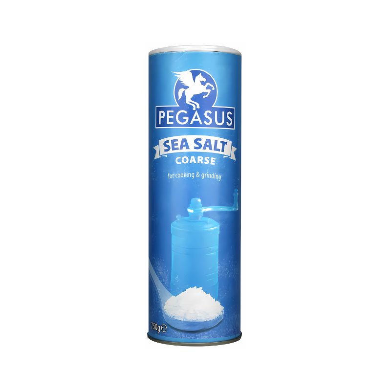 Pegasus Sea Salt Coarse (Drum) 750g brings you the pure essence of the ocean in every grain. Harvested from the clean, clear waters of the Mediterranean, this sea salt is meticulously processed to retain its natural minerals and robust flavor. Packaged in a convenient 750g drum, it’s perfect for both everyday use and special occasions.